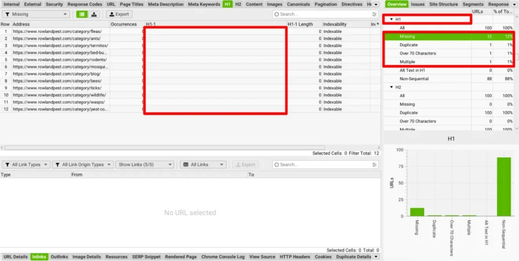 Screaming Frog SEO Spider -> H1 -> Multiple