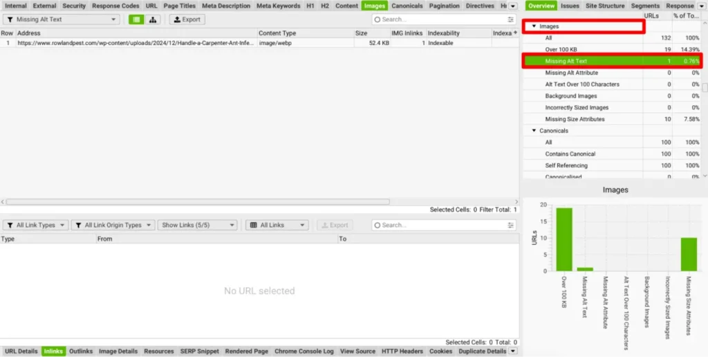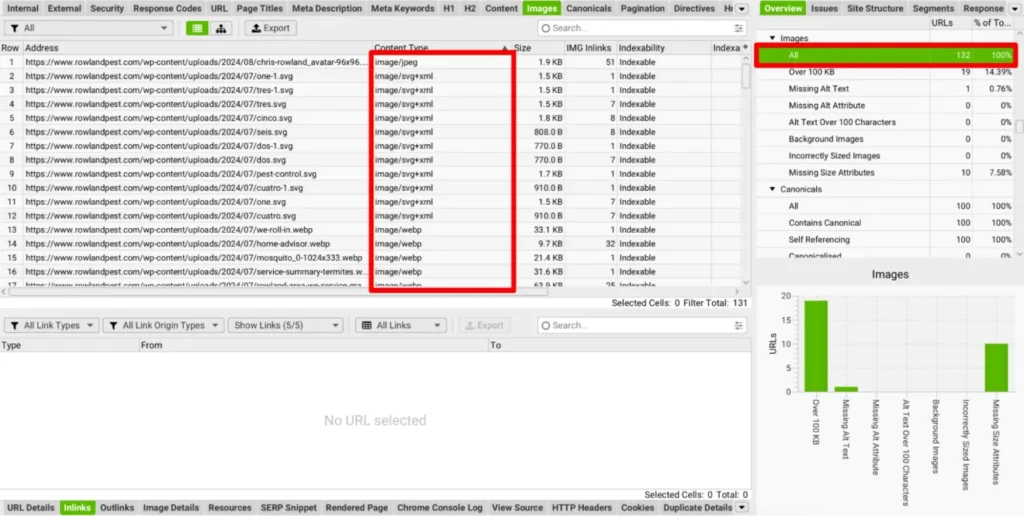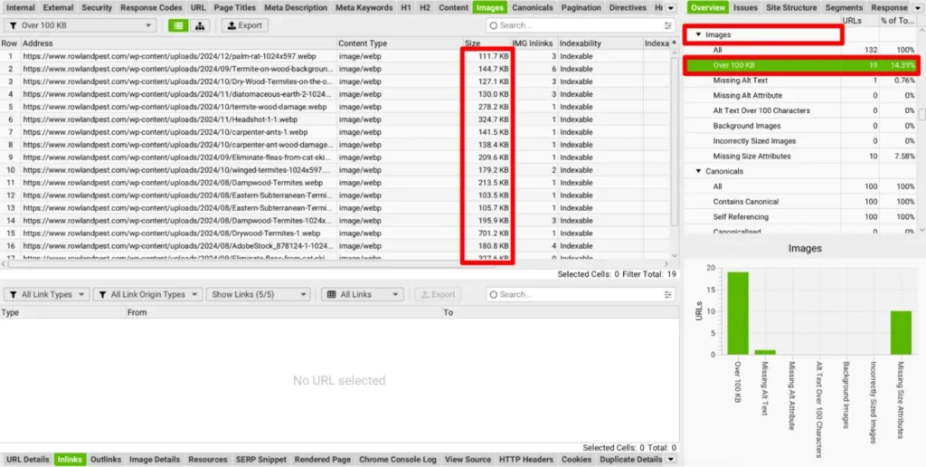 - Check Image Sizes: Use Screaming Frog SEO Spider or browser developer tools to identify the size of images on the website. For each image, check the file size in kilobytes (KB).