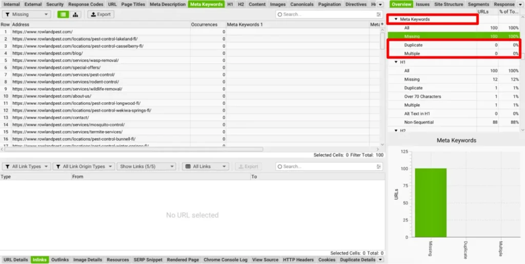 Screaming Frog SEO Spider -> Meta Descriptions -> Multiple