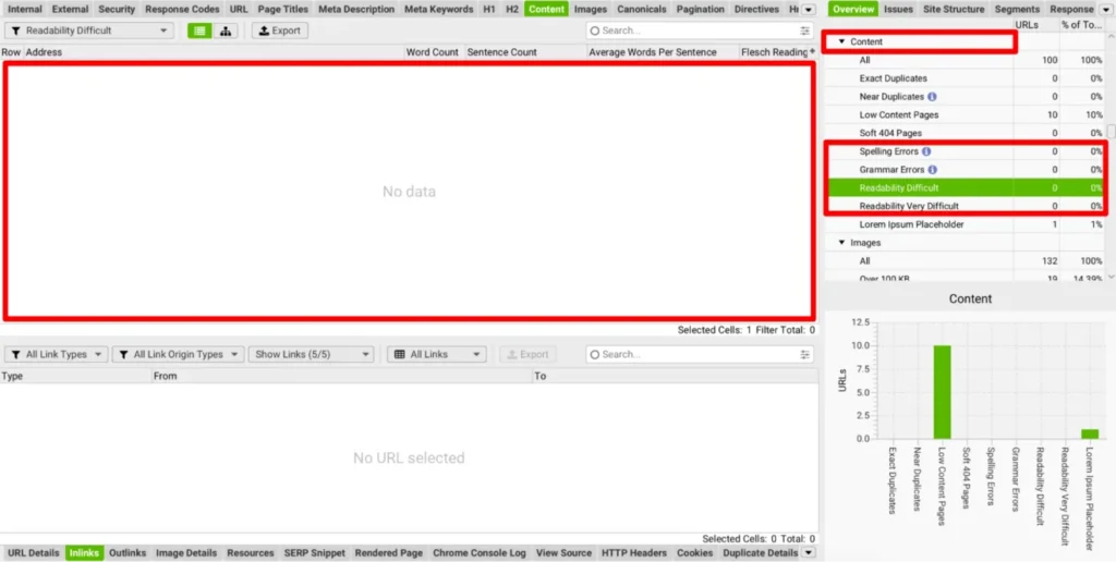 Screaming Frog SEO spider -> Content -> Readability Difficult: