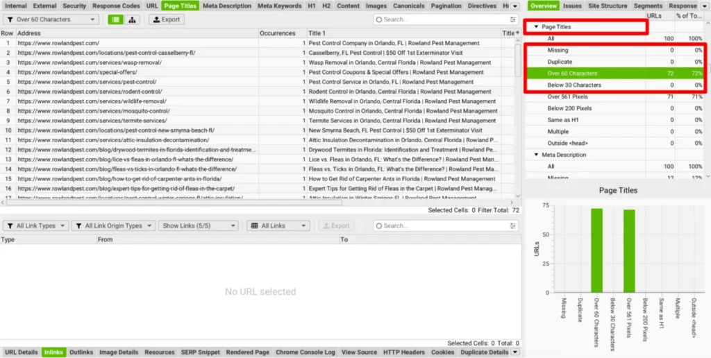 Screaming Frog SEO Spider -> Page Titles -> Over 60 Characters