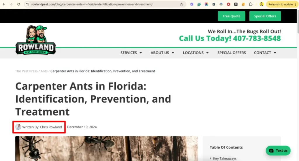 - Check for Author Bio: Each article is attributed to a real person with a brief author bio. The bio should include relevant qualifications, experience, or expertise in the subject matter. For example, if the article is about pest control methods, the author should have relevant experience in pest control or environmental science.